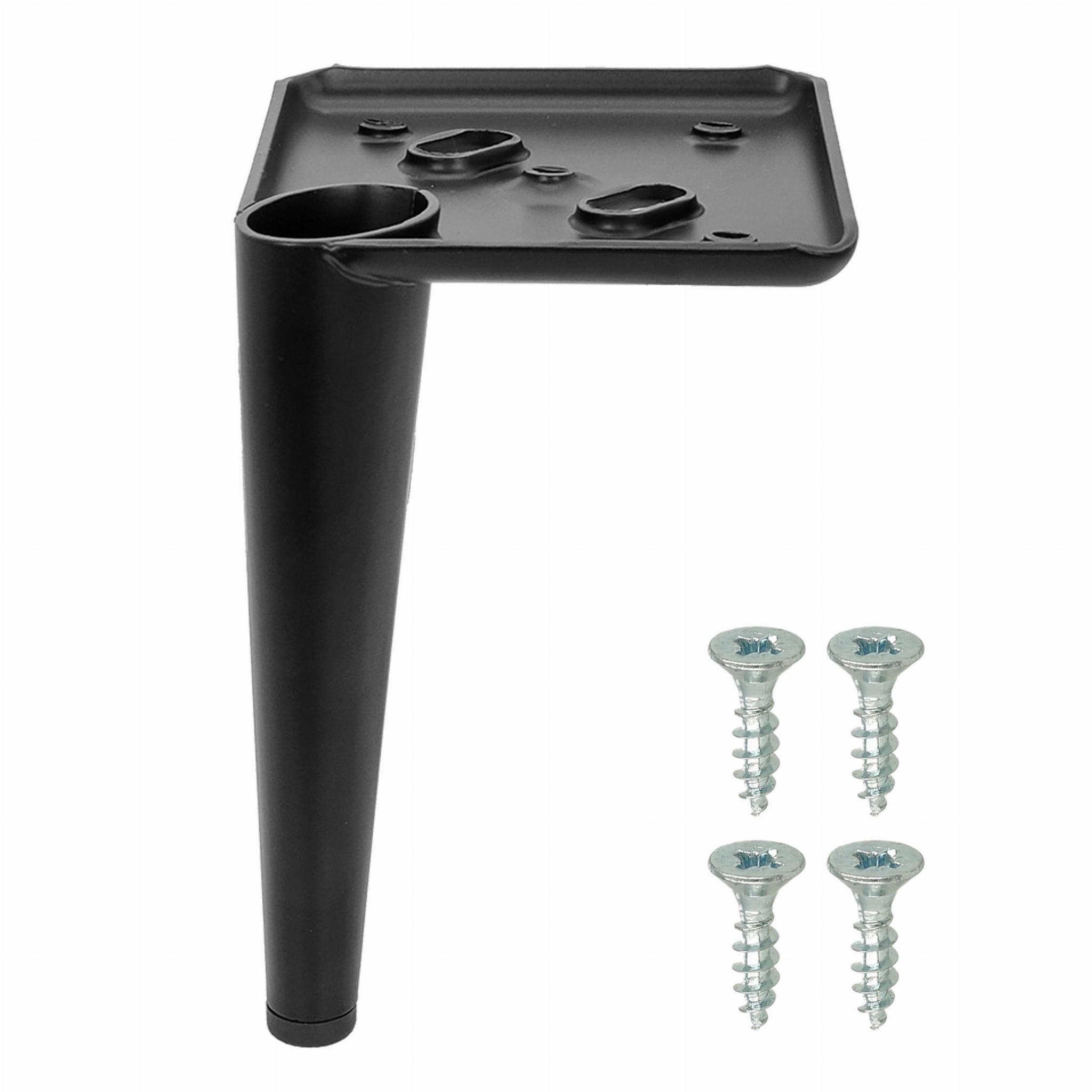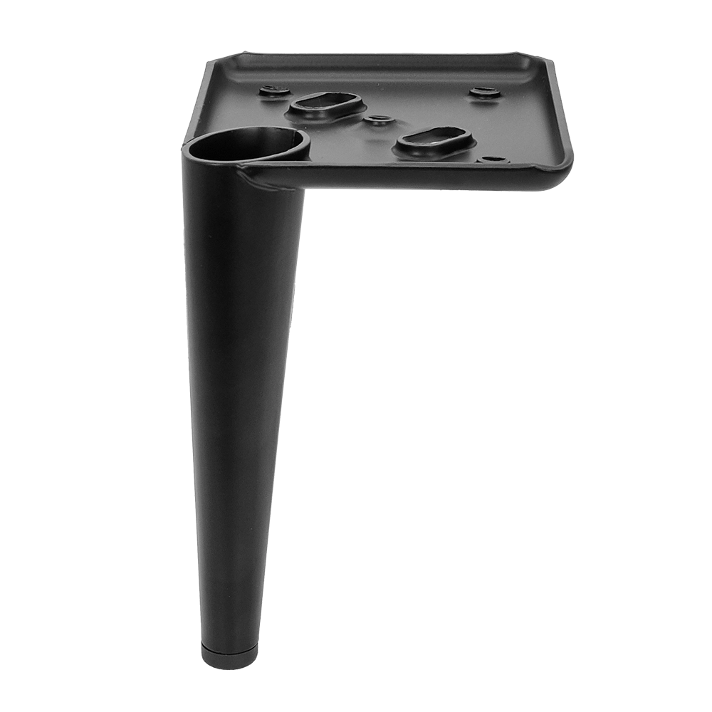 Metalowa noga meblowa o stożkowym kształcie w eleganckim czarnym kolorze to idealny wybór do nowoczesnych mebli. Zapewnia stabilność i wytrzymałość, doskonale sprawdzając się przy montażu w sofie, fotelu, kanapie lub pufie. Noga meblowa o wysokości 15,2 cm została wyposażona w praktyczną blachę montażową o wymiarach 10x10 cm, co znacznie ułatwia proces instalacji za pomocą wkrętów. Wykonana z solidnego metalu, wyróżnia się nowoczesnym designem i funkcjonalnością, idealnie komponując się z minimalistycznymi oraz industrialnymi wnętrzami.