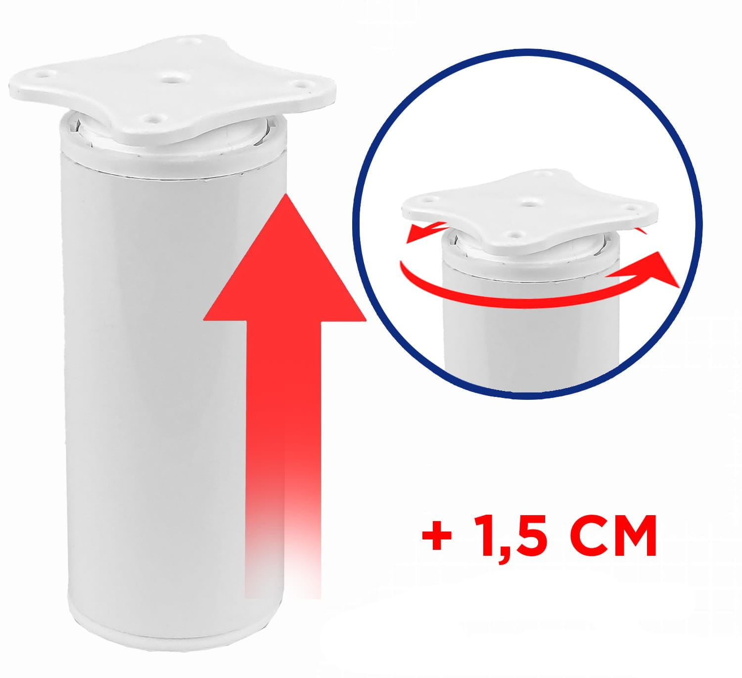 Noga nóżka stopka meblowa fi32, H-150mm, regulacja, Biały połysk, 4 sztuki