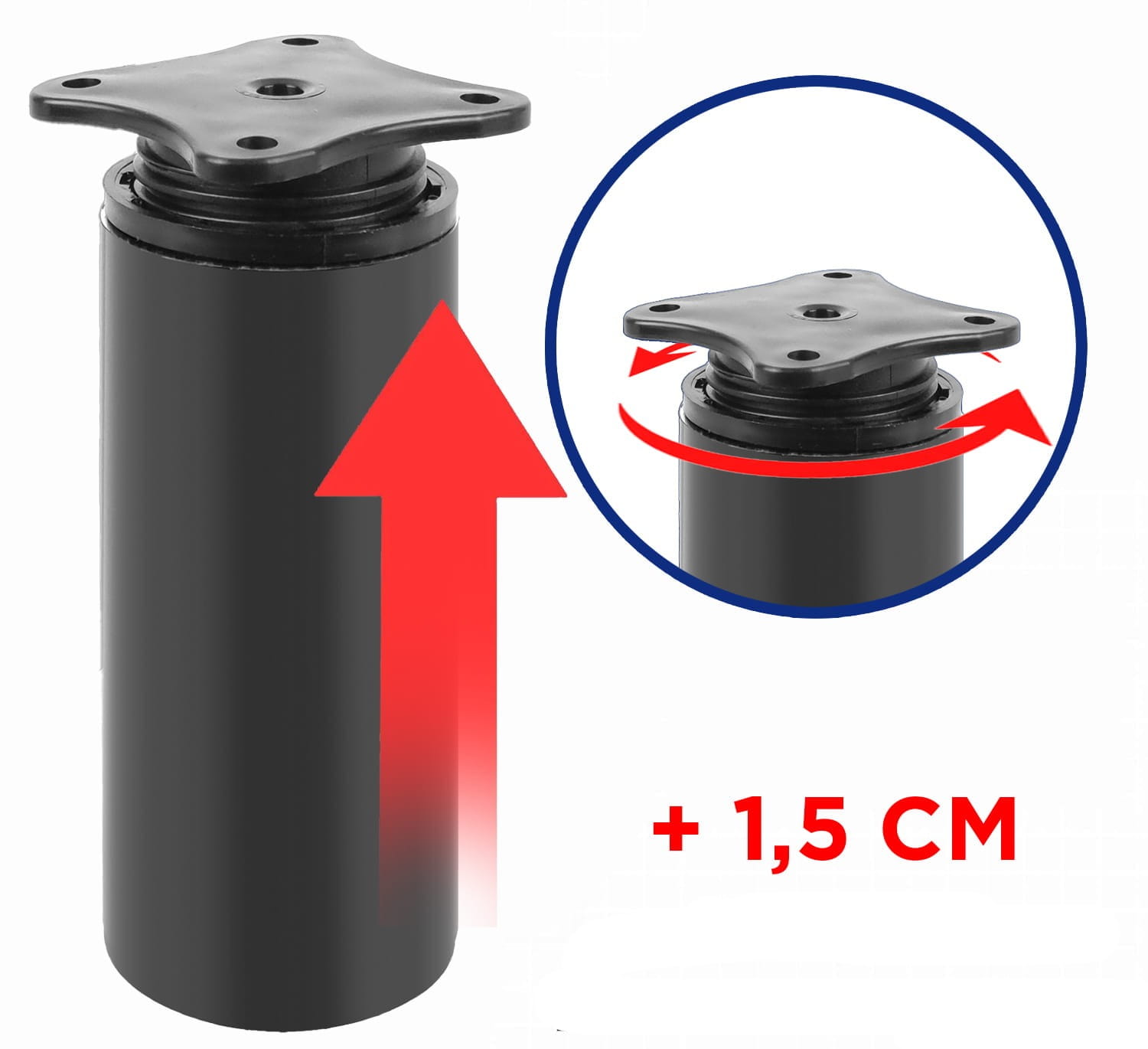 Nóżka nóżka stopka meblowa fi 32, H-150mm, regulacja, Czarny połysk, 4 sztuki