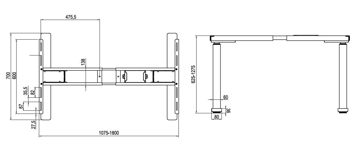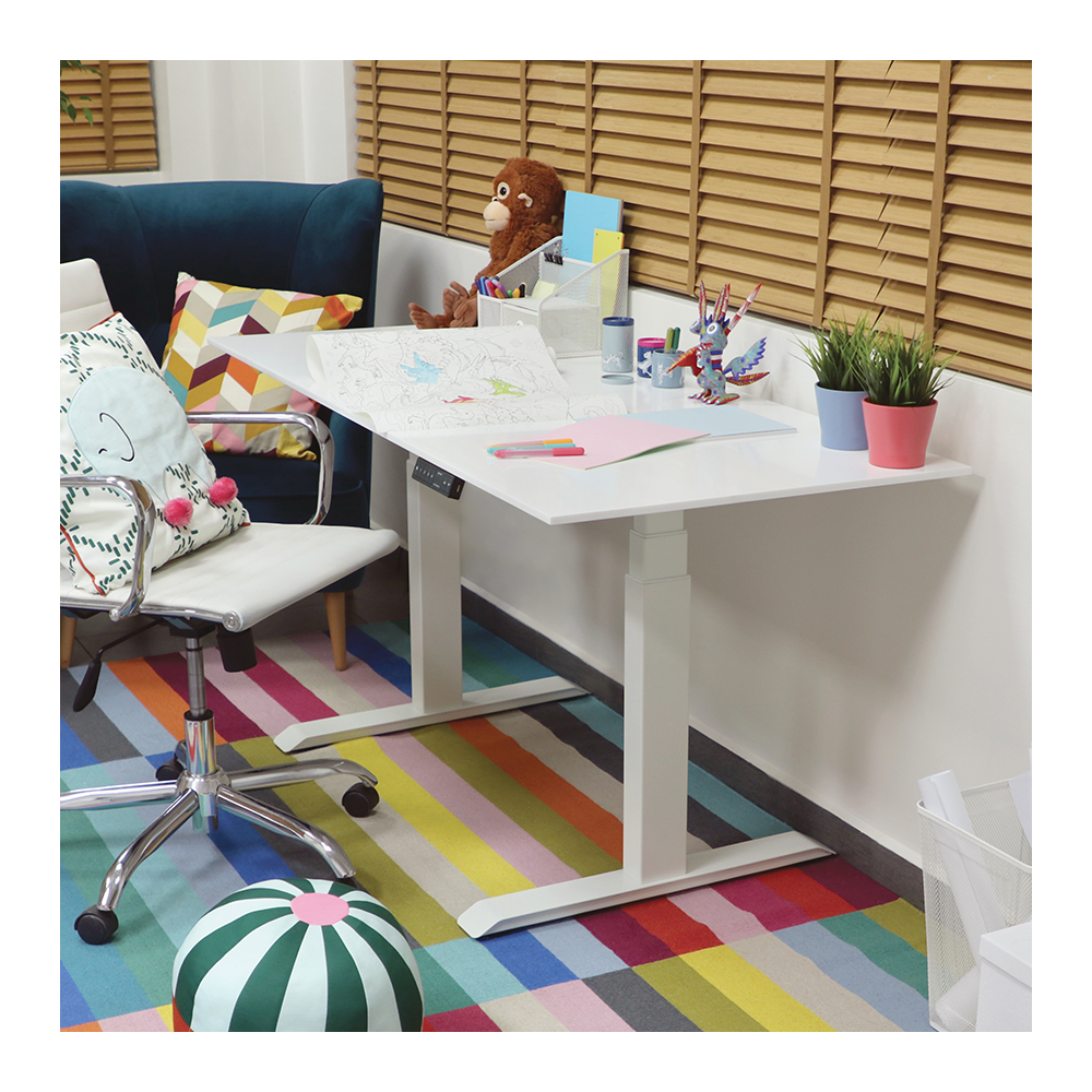 Stelaż do biurek z elektryczną regulacją wysokości w zakresie 625-1275 mm za pomocą zintegrowanego pilota. System pamięci pozwala zaprogramować 3 wysokości w celu wygodnego przełączania między nimi. Możliwość regulacji szerokości (w zakresie 1075-1800 mm)