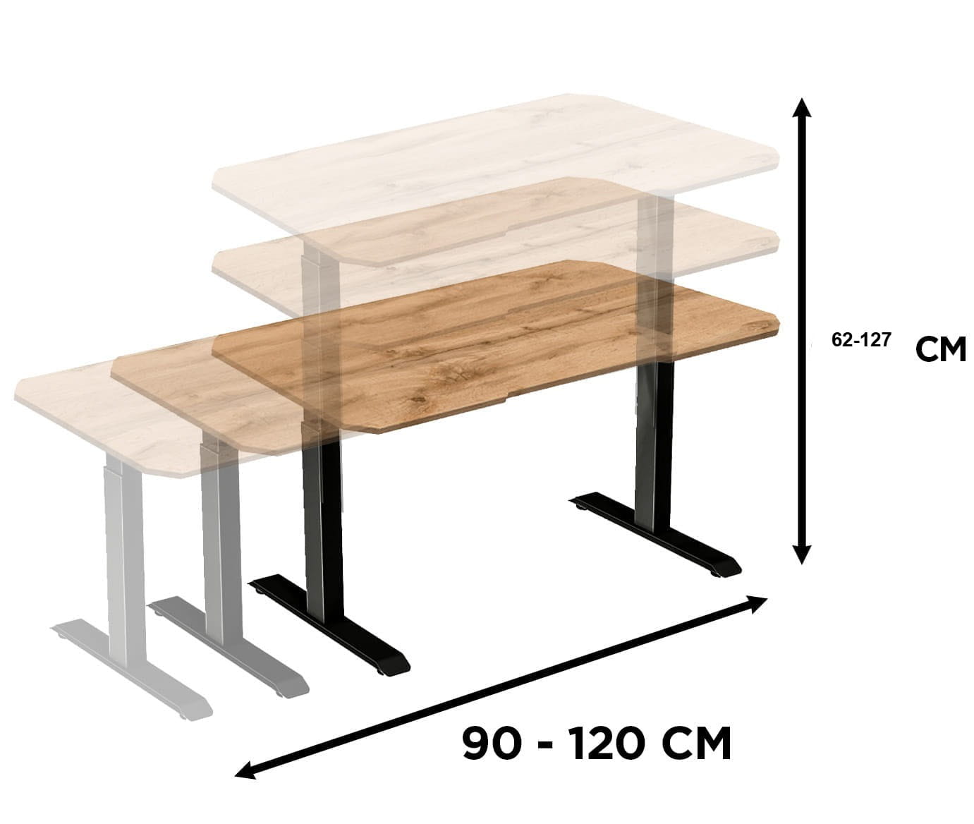 Nogi do biurka, stelaż biurka, elektryczna regulacja FUTURO II H-62-127 cm, Czarny