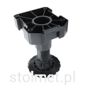 Nóżka Axilo wykonana z wytrzymałego tworzywa gwarantuje udźwig 150 kg/nóżkę. Regulacja nóżki odbywa się bardzo płynnie poprzez staranny odlew i dopasowanie elementów. Mocowanie za pomocą 4 wkrętów zapewnia silne połączenie jej do korpusu mebla. Regulacja nóżki na poziomie -10 do +20 mm zapewnia swobodę przy poziomowaniu wysokości mebla.