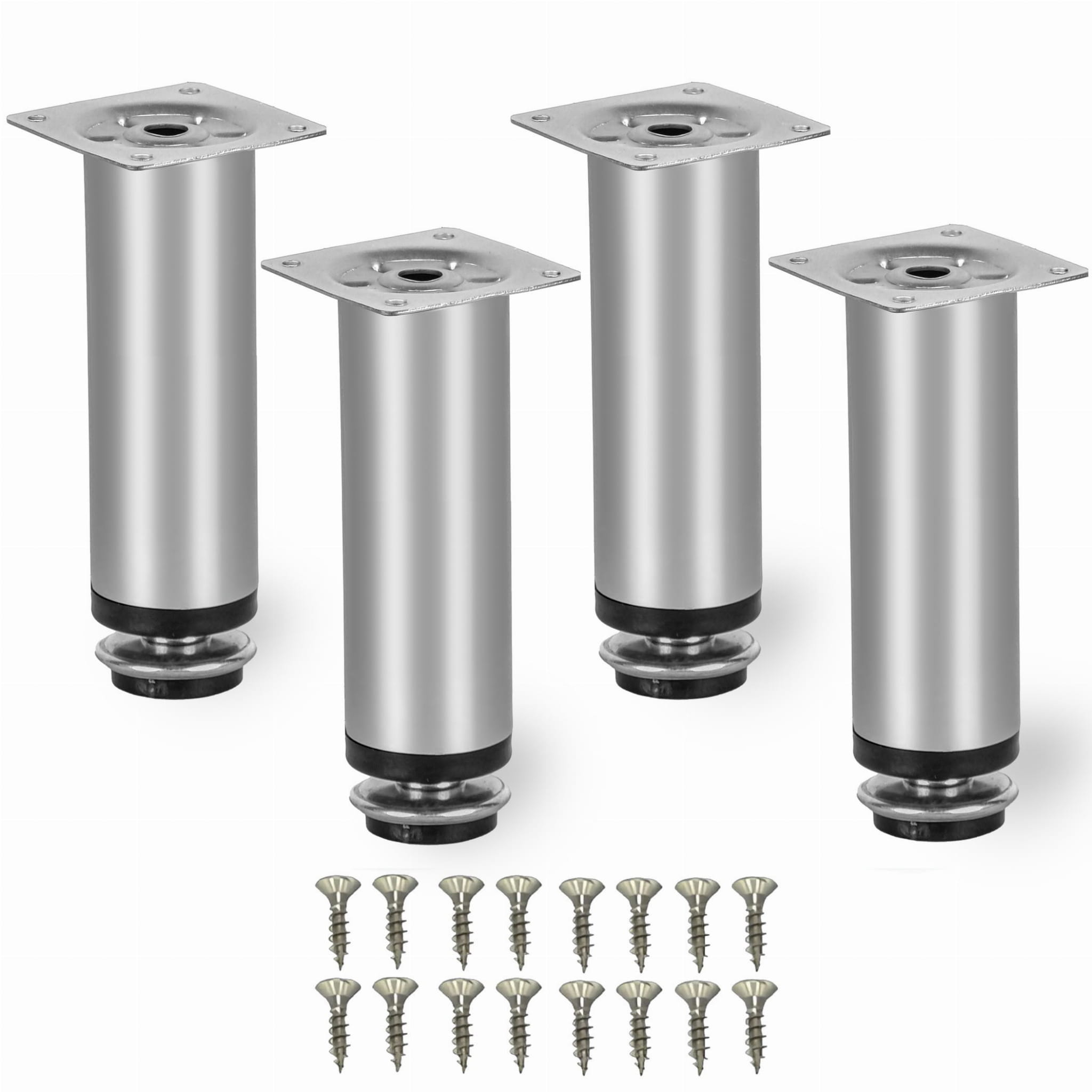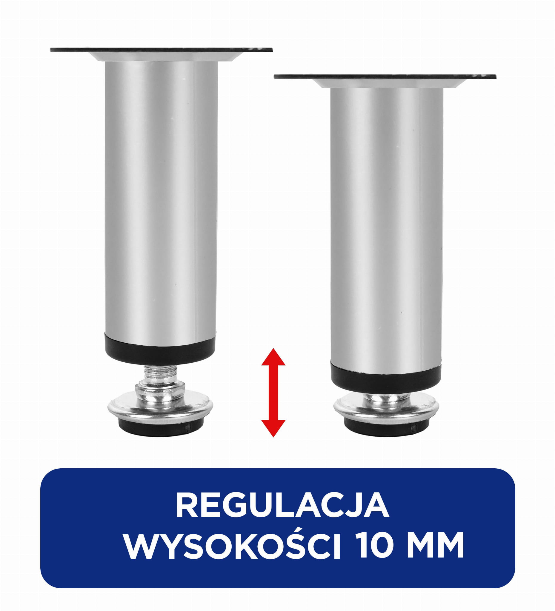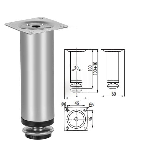 Nóżka meblowa BD-10 z regulacją, Aluminium mat, 100 mm + 10 mm. 4 SZT + Wkręty