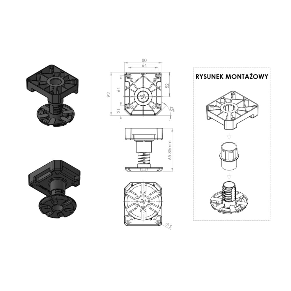 Nóżka meblowa MULTI LEG, H-65 - 85 mm, 500 kg, 4 SZTUKI