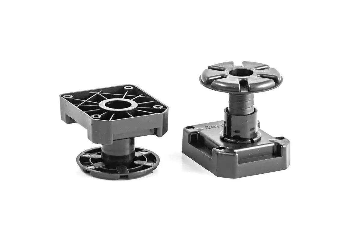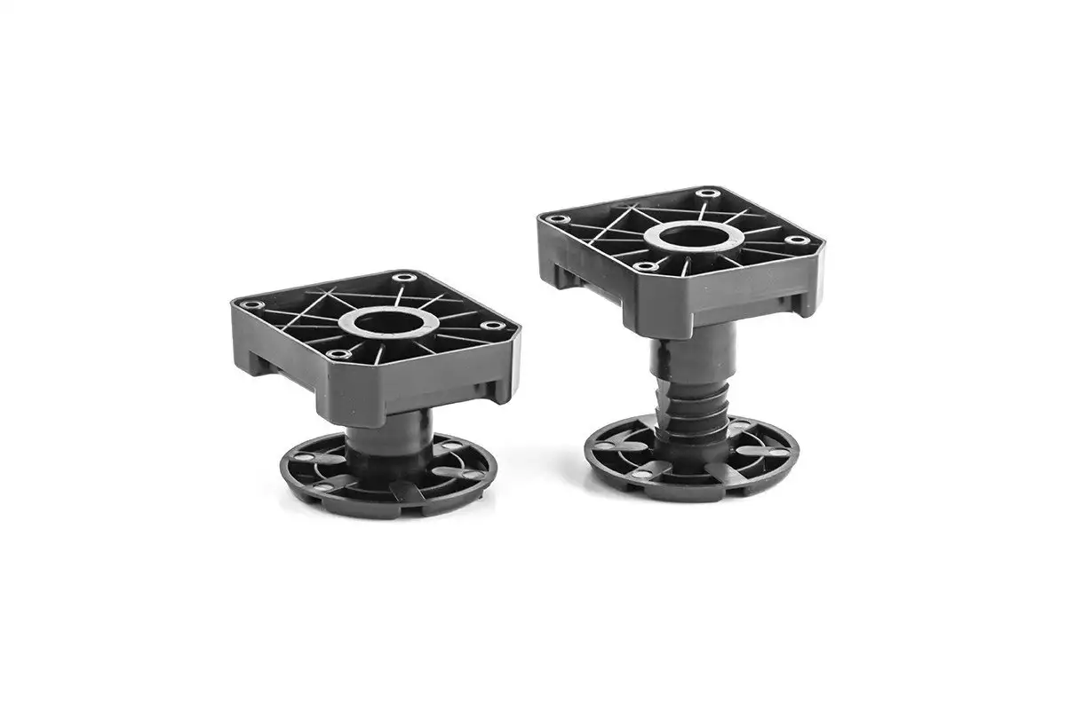 Nóżka wykonana z wytrzymałego tworzywa gwarantuje udźwig 500 kg/nóżkę. Regulacja nóżki odbywa się bardzo płynnie poprzez staranny odlew i dopasowanie elementów. Mocowanie za pomocą 4 wkrętów zapewnia silne połączenie jej do korpusu mebla. Regulacja nóżki zapewnia swobodę przy poziomowaniu mebla.