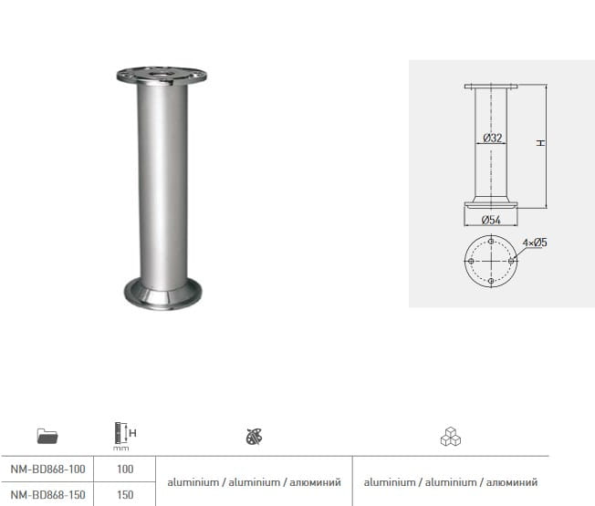 Nóżka meblowa aluminiowa BD-868, aluminium mat, 100 mm
