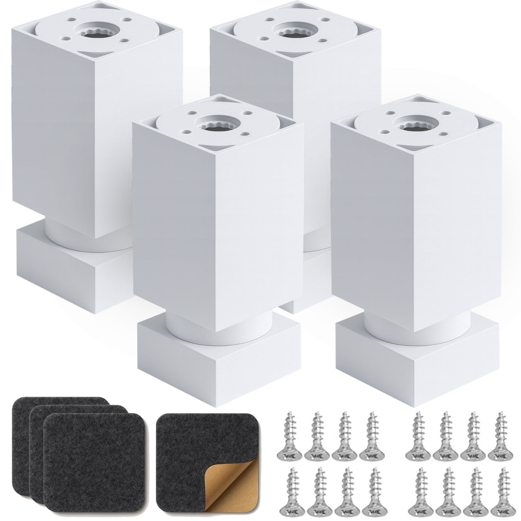 Nóżka nóżka stopka meblowa 45x45, H-100mm, regulacja, Biały mat+ FILC, 4 sztuki GRUBE TWORZYWO