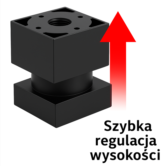 Nóżka nóżka stopka meblowa 45x45, H-60mm, regulacja, Czarny mat + FILC, 4 sztuki GRUBE PORZĄDNE TWORZYWO!!