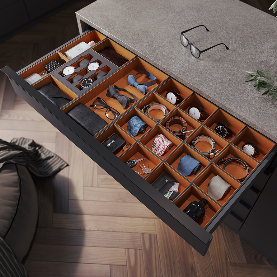 Organizer do szuflady na biżuterię 520mm, model A2, Czarno - pomarańczowy