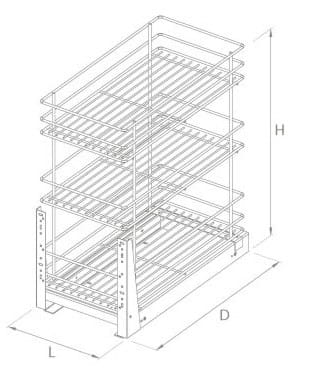 PALETA Kosz Cargo 3 półki, W-40cm, Pełny wysuw, Samodociąg, P22 Srebrny - 15 SZTUK
