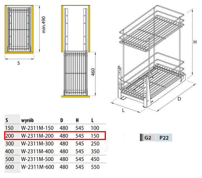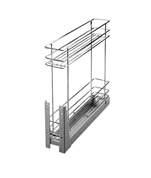 Kosz cargo do szafki o szerokości zewnętrznej 20cm. Grube pokrycie powłoki zabezpiecza kosz przed korozją i izoluje przed kontaktem z żywnością. Przednie mocowanie frontu powoduje, że jego montaż oraz ustawienie pozostaje dziecinnie prostym zadaniem.