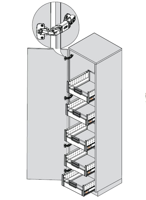 Podpowiedzi montażowe: od szerokości wewnętrznej korpusu należy odjąć 98 mm aby uzyskać wymiar przycięcia panelu przedniego