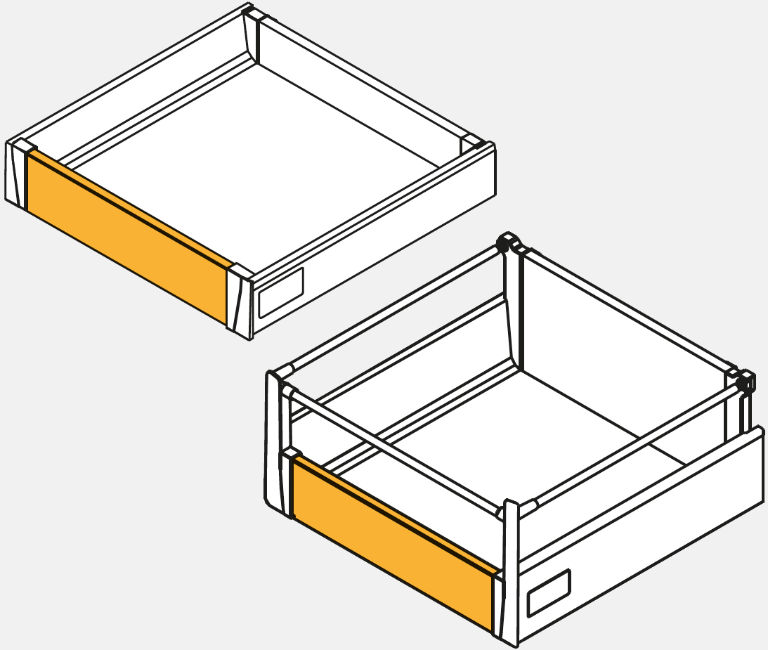 W systemie Modern BOX do szuflady standardowej można wykonać szufladę wewnętrzną. Panel przedni o długości 1100 mm jest jednym z elementów tej szuflady.
