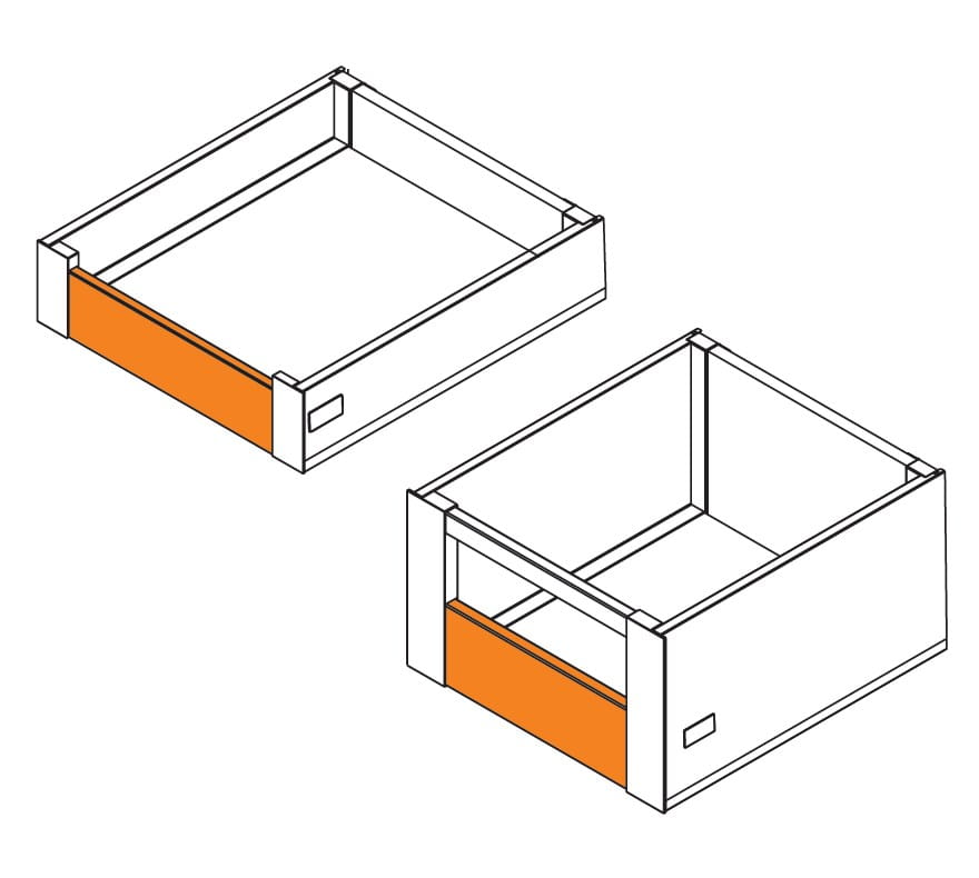W systemie GTV AXIS na bazie szuflady standardowej można wykonać szufladę wewnętrzną. Panel przedni o długości 1100 mm jest jednym z elementów tej szuflady.