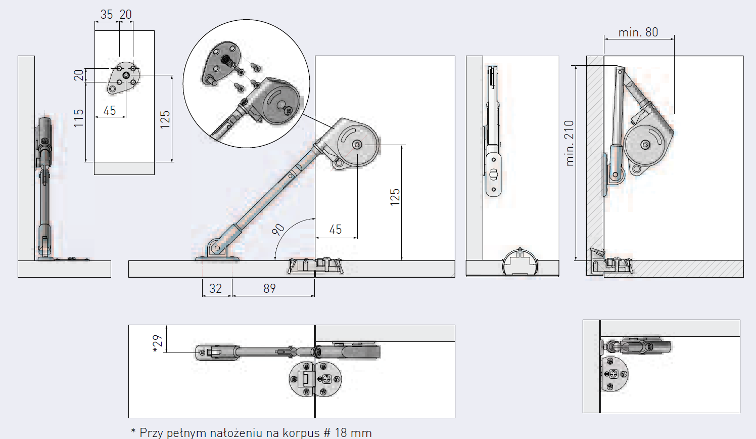Do poprawnego działania podnośnika wymagane jest zastosowanie zawiasu GTV-PD-MD-ZB-01 lub 04 - dostępny poniżej w produktach powiązanych