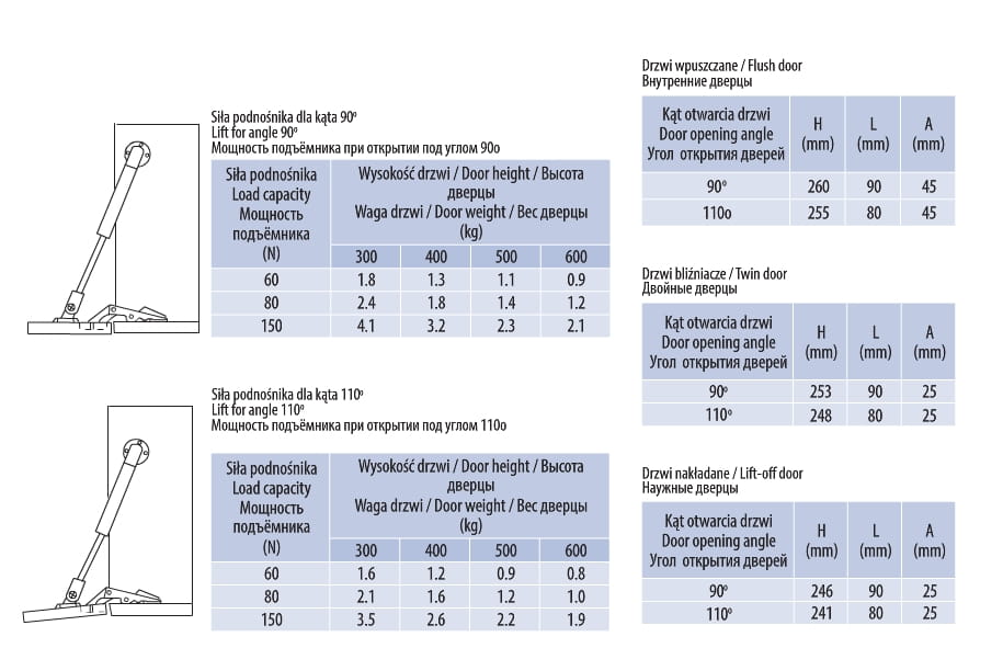 - możliwość ustawienia dwóch kątów otwierania szafki: 90° oraz 110°