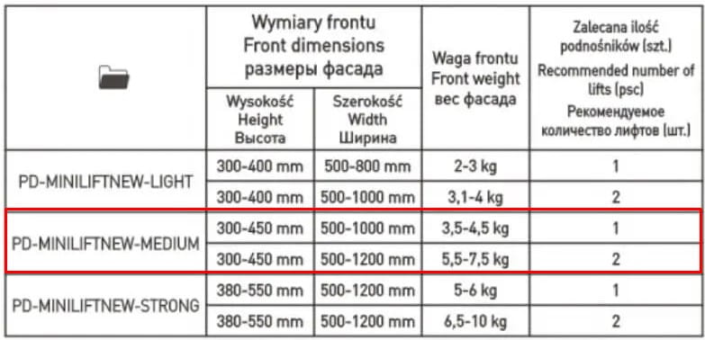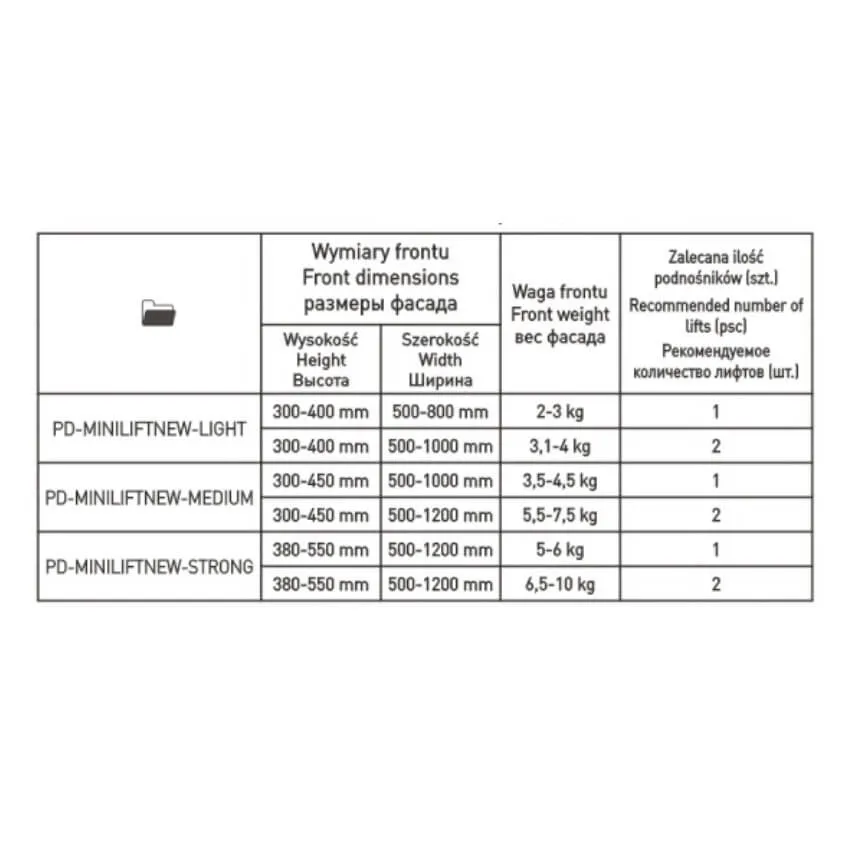 Podnośnik do szafek GTV MINILIFT Medium, do frontów 3,5 - 4,5 kg