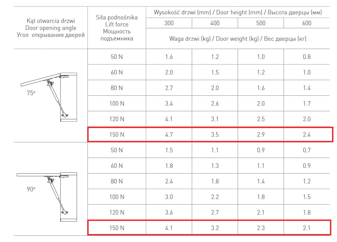 - Siła: 150N