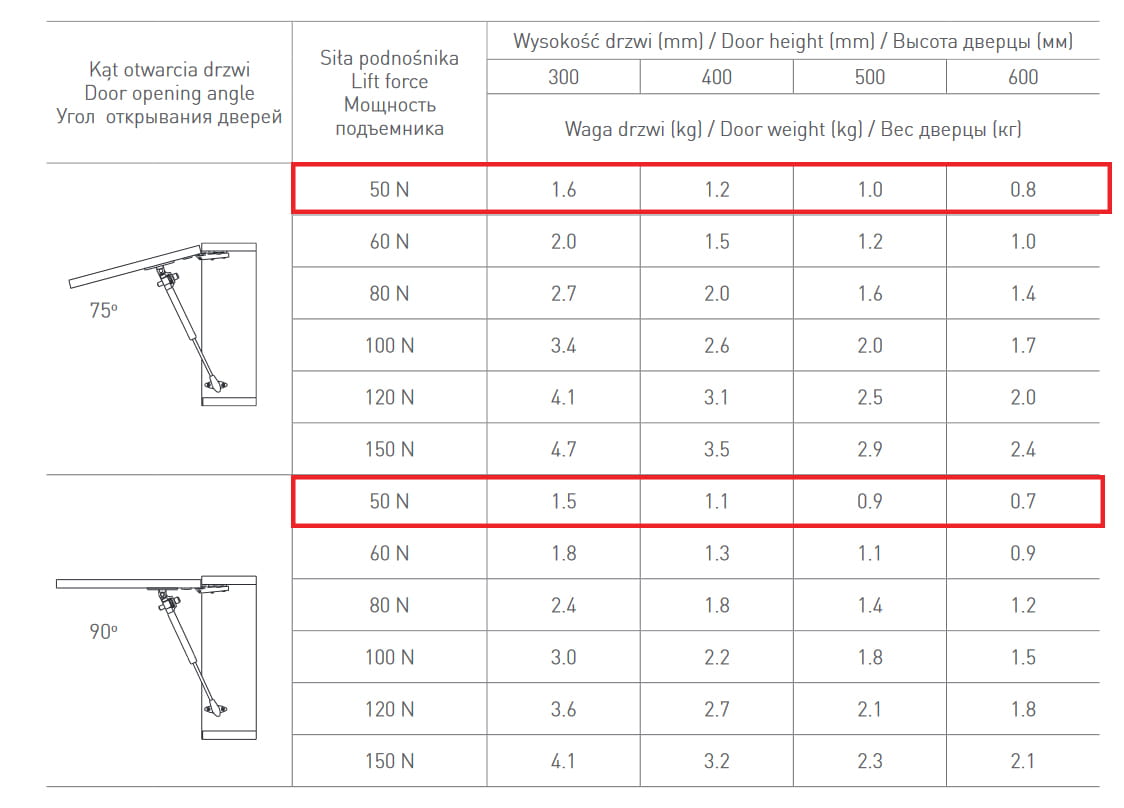 - Siła: 50N