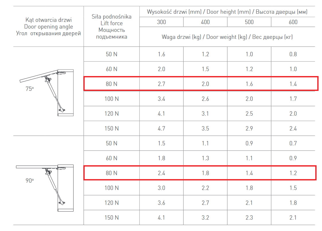 - Siła: 80N