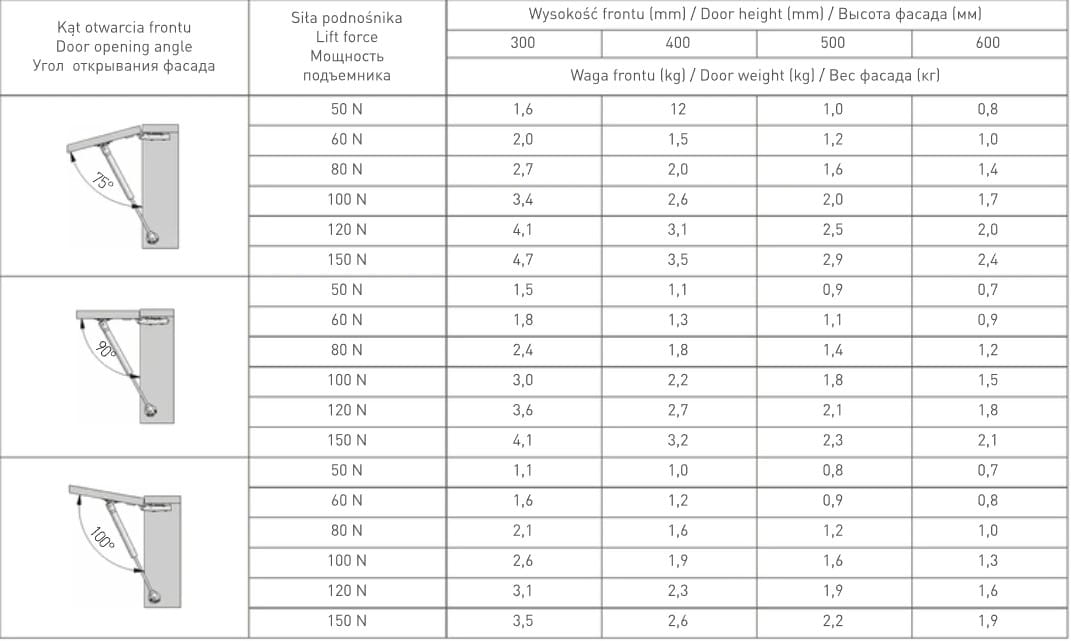 przeznaczony do szafek otwieranych do góry zapewnia płynne podnoszenie oraz opuszczanie frontu.