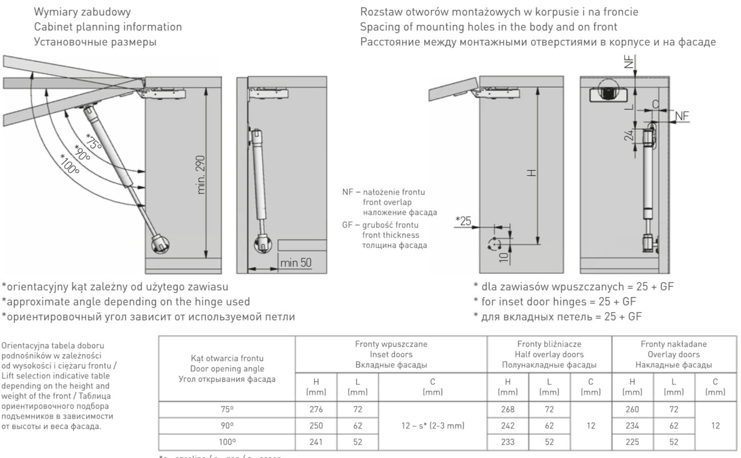 - do zastosowania z frontami unoszonymi do góry,