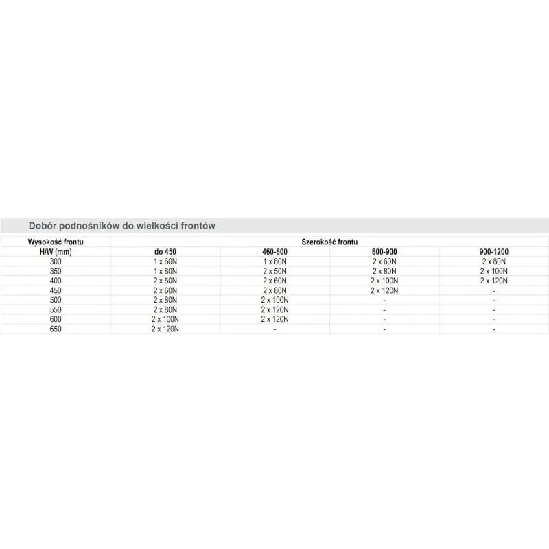 - zastosowanie: do szafek otwieranych do góry (do frontu uchylnego)