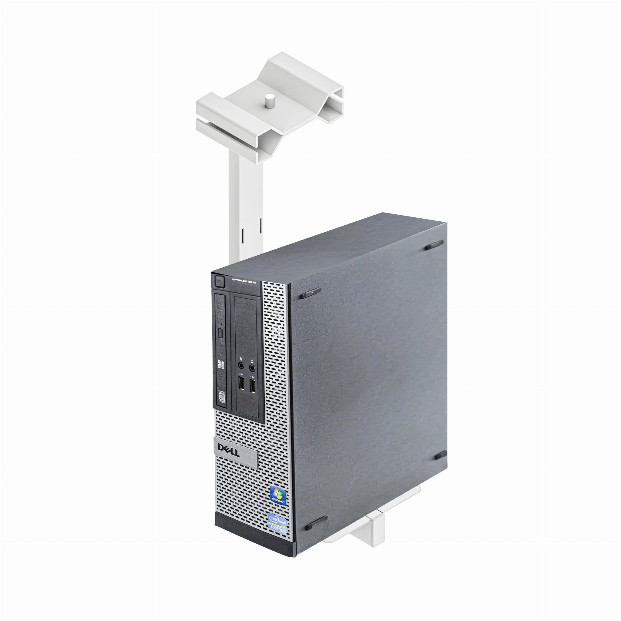 - Konstrukcja montowana jest na stelażu, dzięki czemu komputer porusza się wraz z regulacją biurka elektrycznego.