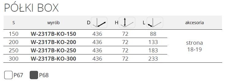 - możliwość komplementacji półek o różnych szerokościach