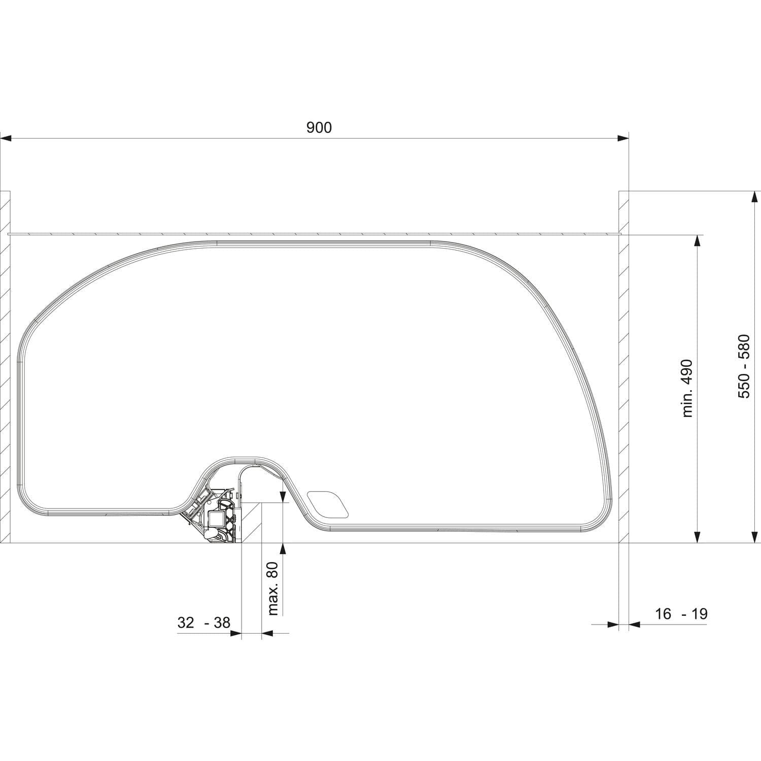 - Głębokość zabudowy (mm): 490
