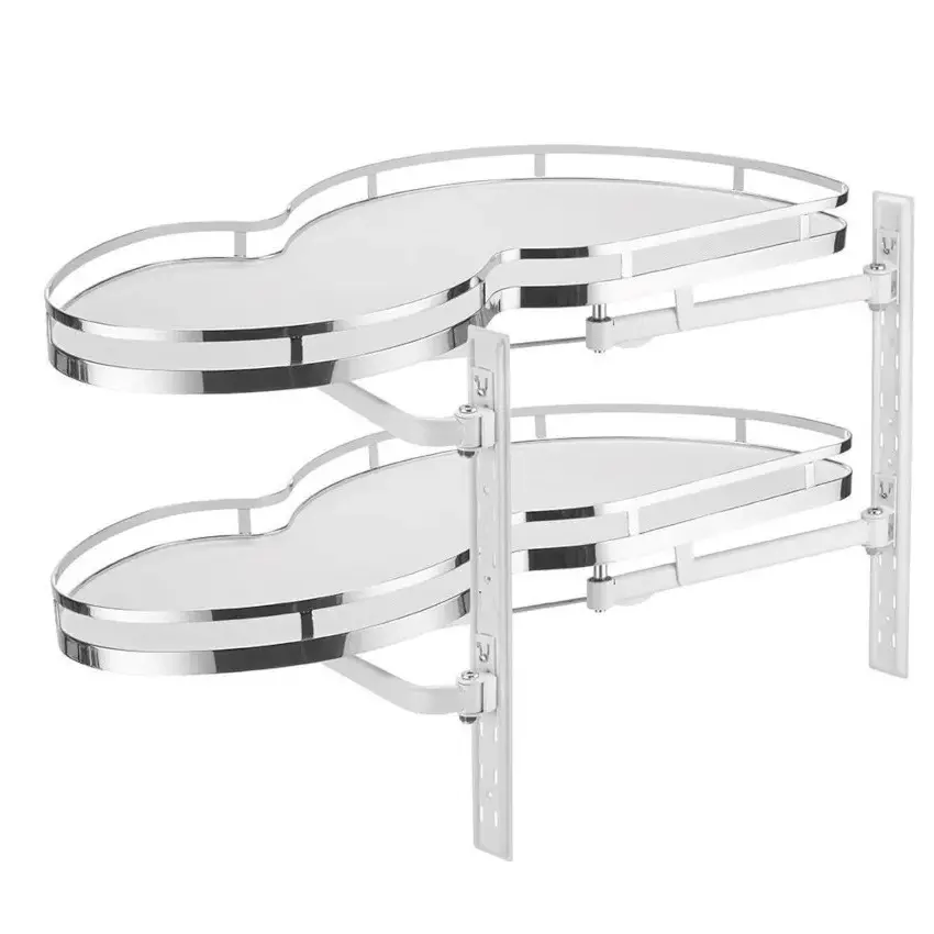 Półka narożna nerka KN-10-LCP do szafki 1000, reling płaski, lewa, Chrom