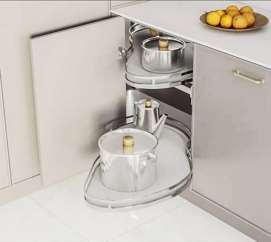 Półki wysuwane typu nerka do szafki narożnej o szerokości 90 cm z frontem 50 cm wysuwane w prawą stronę