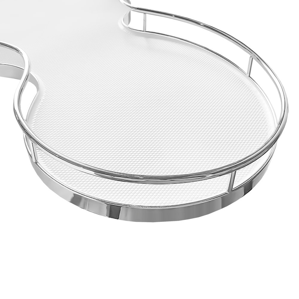 Kosz cargo typu nerka jest to system szuflad do szafek narożnych. Dwa kosze wysuwają się niezależnie od siebie wykorzystując do maksimum przestrzeń w głębi szafki narożnej. Kosz cargo narożny został wyposażony reling dookoła półki oraz w matę antypoślizgową zapobiegającą przemieszczaniu się znajdujących się na niej rzeczy podczas wysuwania. Nerka do szafki narożnej posiada również system cichego domyku - wystarczy pchnąć aby kosz powoli wsunął się do szafki.
