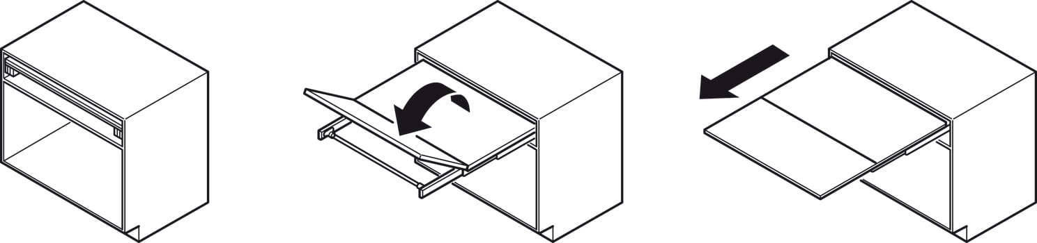 Dzięki zastosowaniu tego okucia, stół można z łatwością schować w korpusie mebla, oszczędzając miejsce, a kiedy potrzeba, wysunąć go, tworząc dodatkową przestrzeń roboczą.