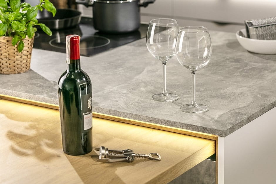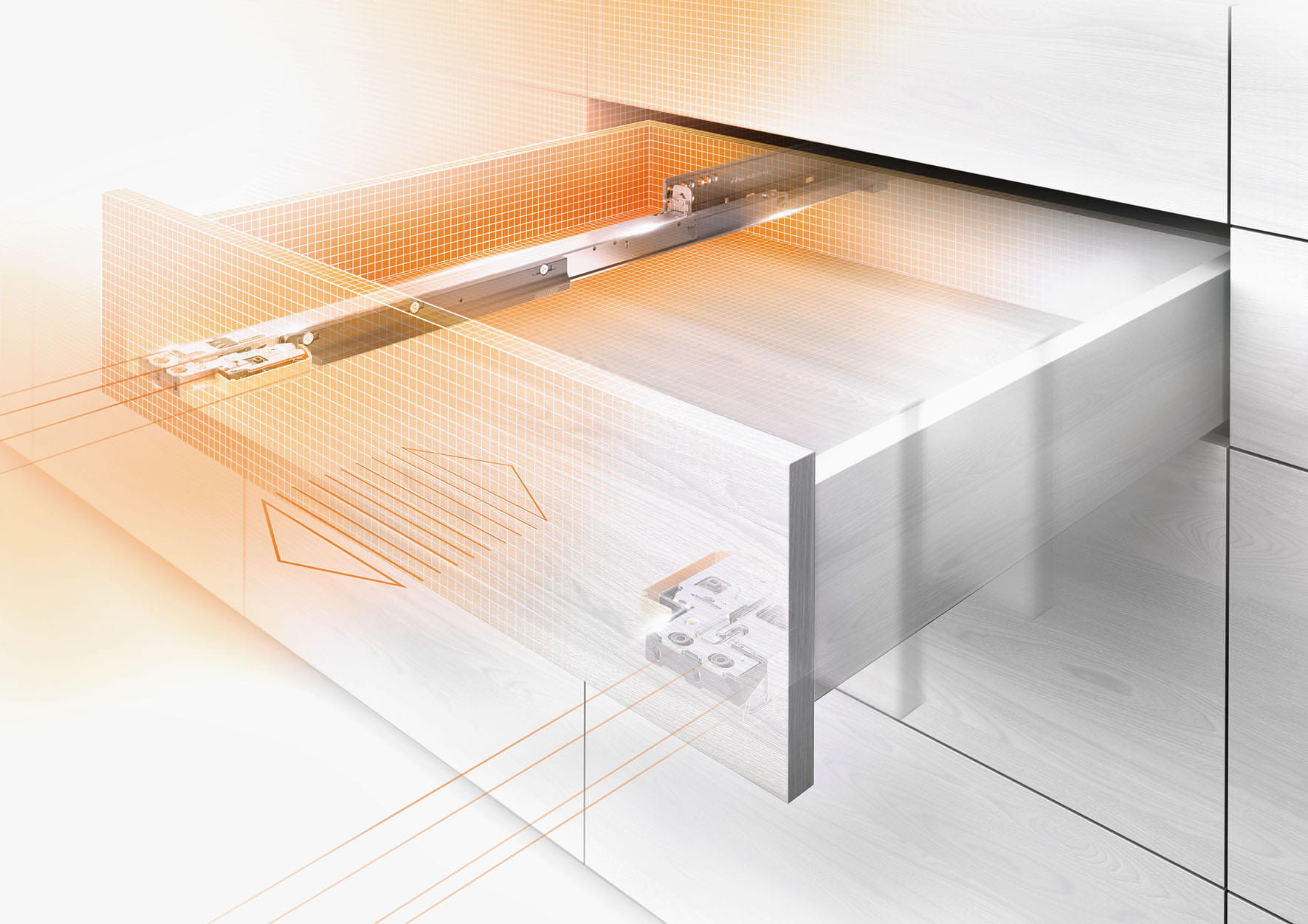 Zastosowanie prowadnicy pozwala na ukrycie mechanizmu pod dnem zapewniając estetyczny wygląd systemu.