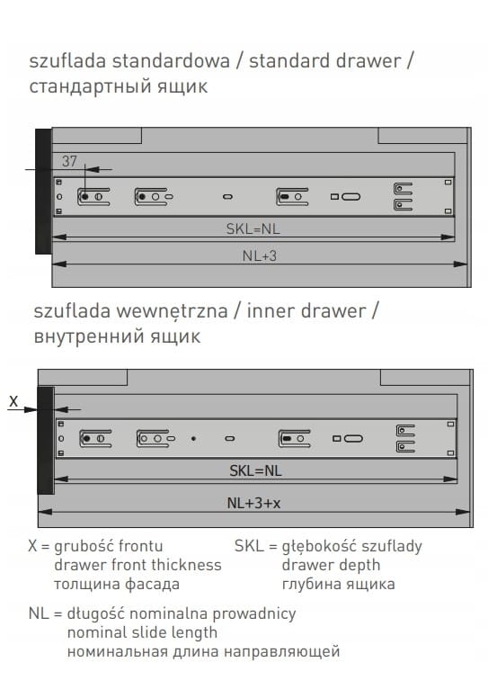 - Zawartość zestawu: 2 szt. prowadnica (Lewa + prawa)