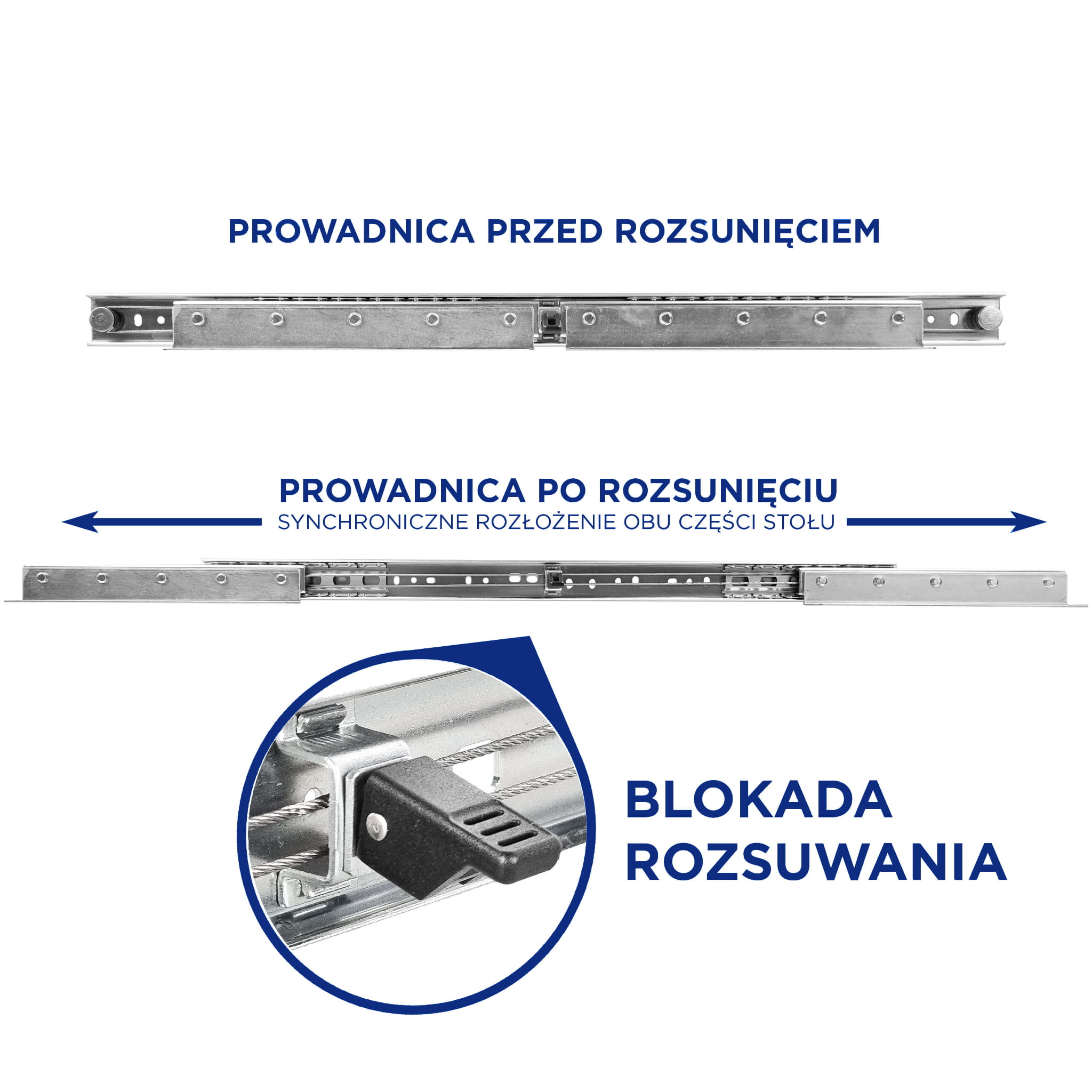 Prowadnica stołu PRO synchroniczna-linka, 140 cm, wkładka do 122 cm