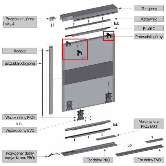 Prowadnik górny EVO 18 mm, Komplet + wkręty