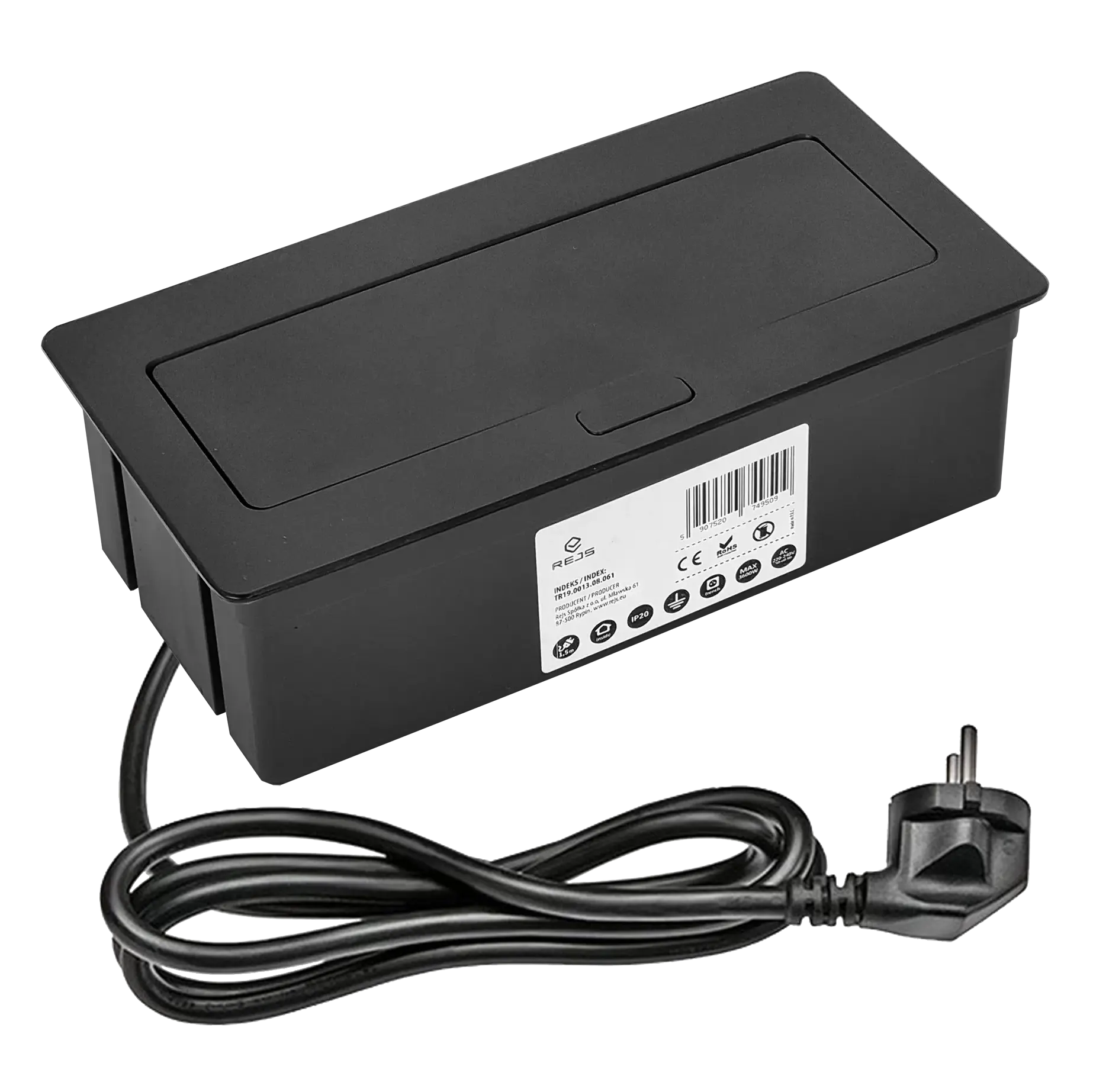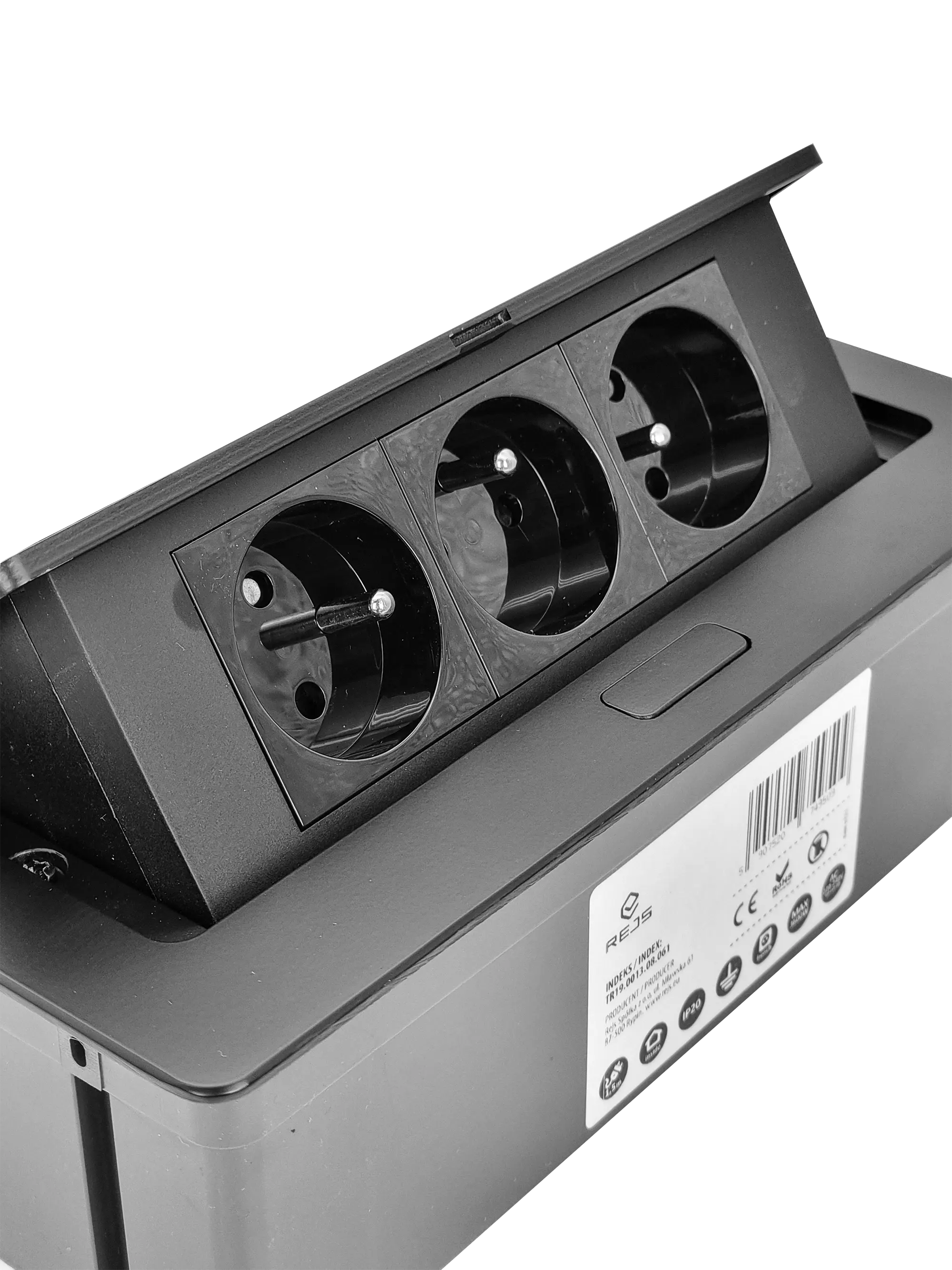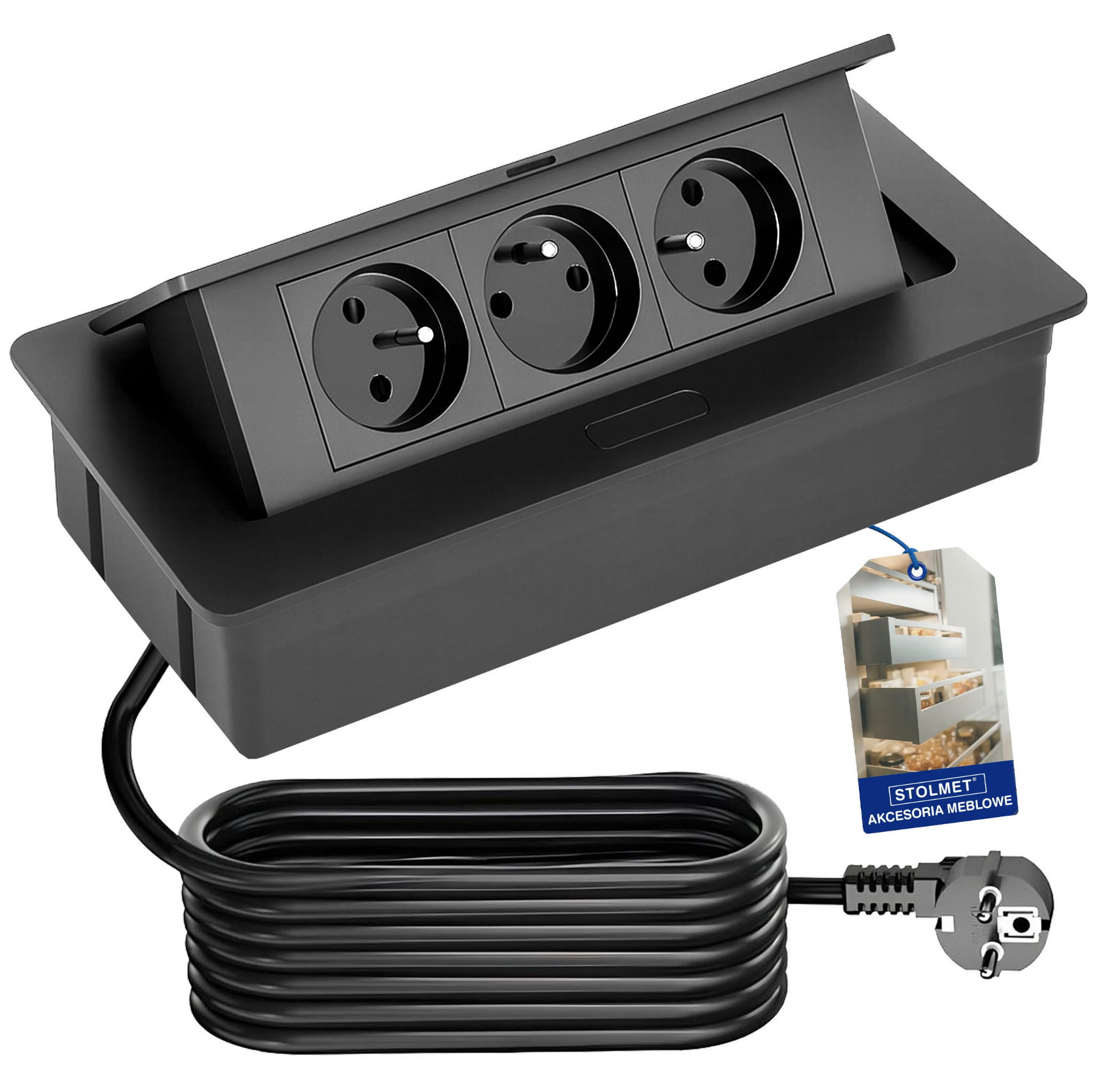 Przedłużacz ELEKTRIMA KWADRO biurkowy wpuszczany prostokątny 3 gniazda z bolcem, czarny