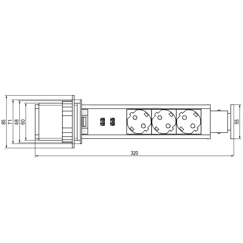 Nowoczesny i stylowy przedłużacz biurowy dzięki opcji ukrycia go wewnątrz mebla stanowi niesamowicie praktyczny element zabudowy blatu.
