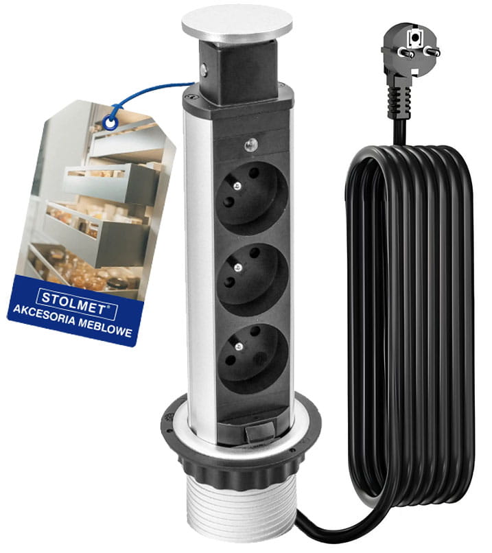 Przedłużacz biurkowy ELEKTRIMA TUBUS wysuwany, srebrny, fi 60, 3 gniazda