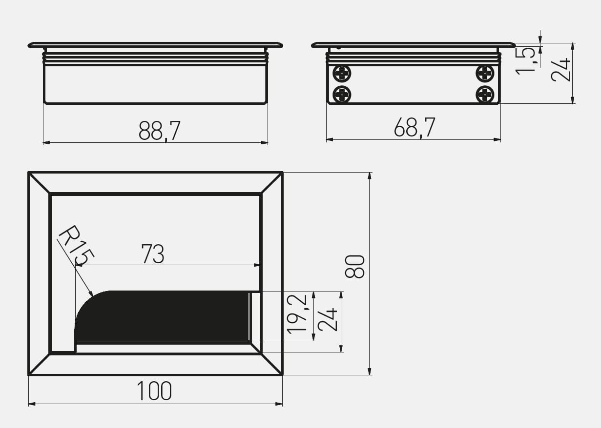 Przepust przelotka do kabli Merida prostokątny, 80 x 100, Aluminium