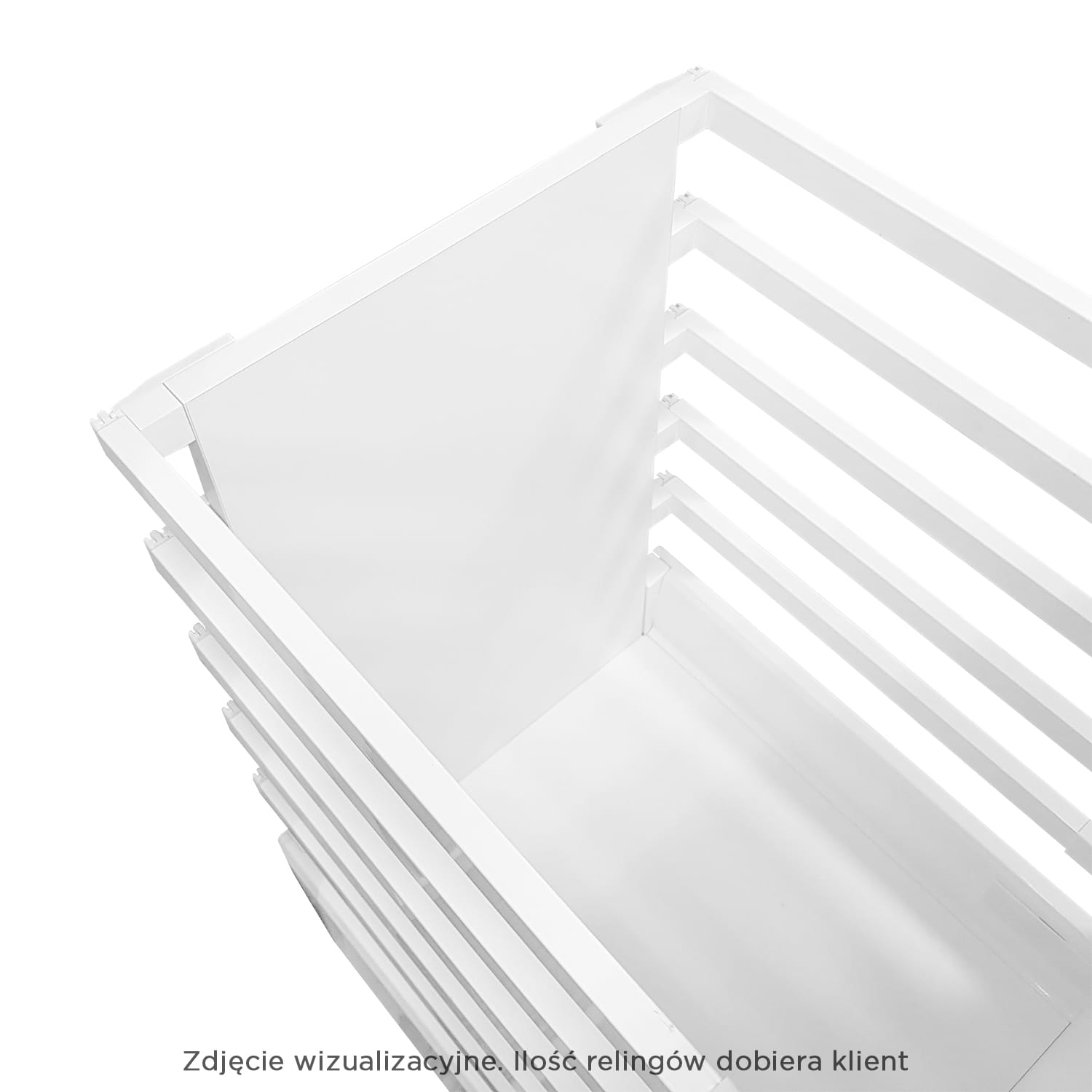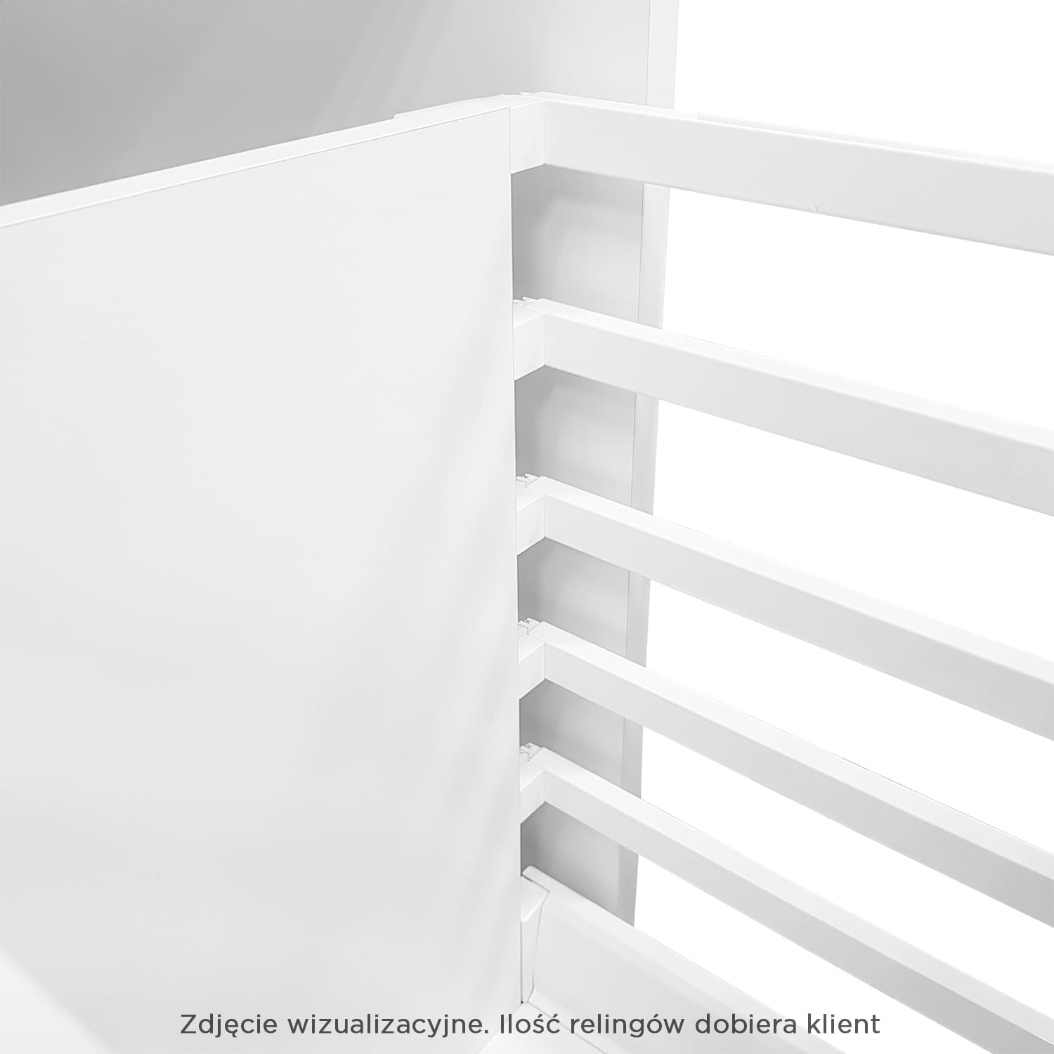 - Odcinek ścianki tylnej od jej mocowania w górę, mierzymy i dostosowujemy ilość relingów wg własnego uznania.