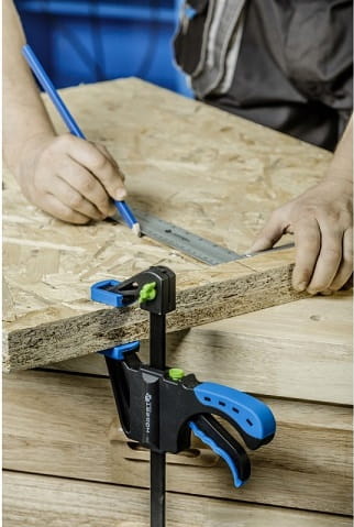 - Ścisk stolarski automatyczny, umożliwiający szybkie ściskanie oraz rozpieranie elementów.