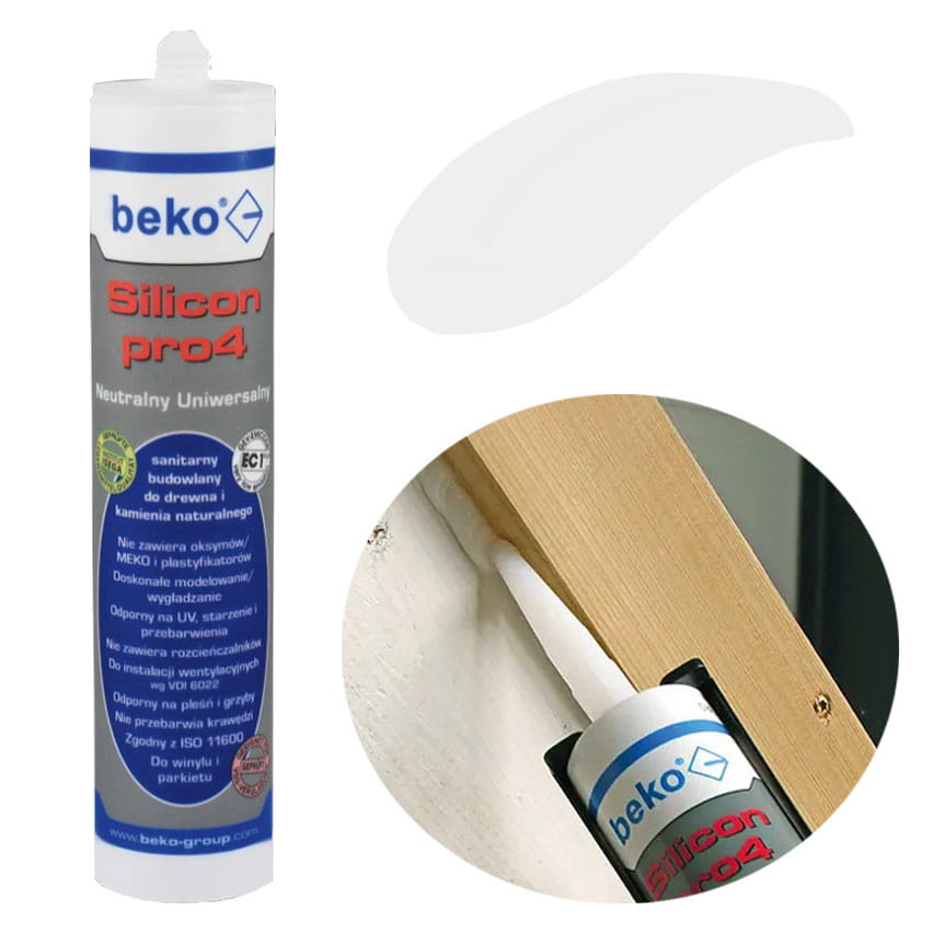 Warunkiem prawidłowego wykonania prac uszczelnieniowych jest poprawne zwymiarowanie spoin i przygotowanie powierzchni stykowych. W celu uzyskania maksymalnej przyczepności konieczne jest czyste, pozbawione tłuszczów podłoże o idealnej strukturze. Materiał beko SILICON pro4 można stosować na wielu podłożach bez gruntowania. Ogólnie zaleca się jednak wykonanie próby w warunkach roboczych i zagruntowanie podłoża w przypadku niskiej przyczepności. W celu uniknięcia przylegania do trzech powierzchni nośnych należy stosować materiał wypełniający w formie poliuretanowego profilu okrągłego.