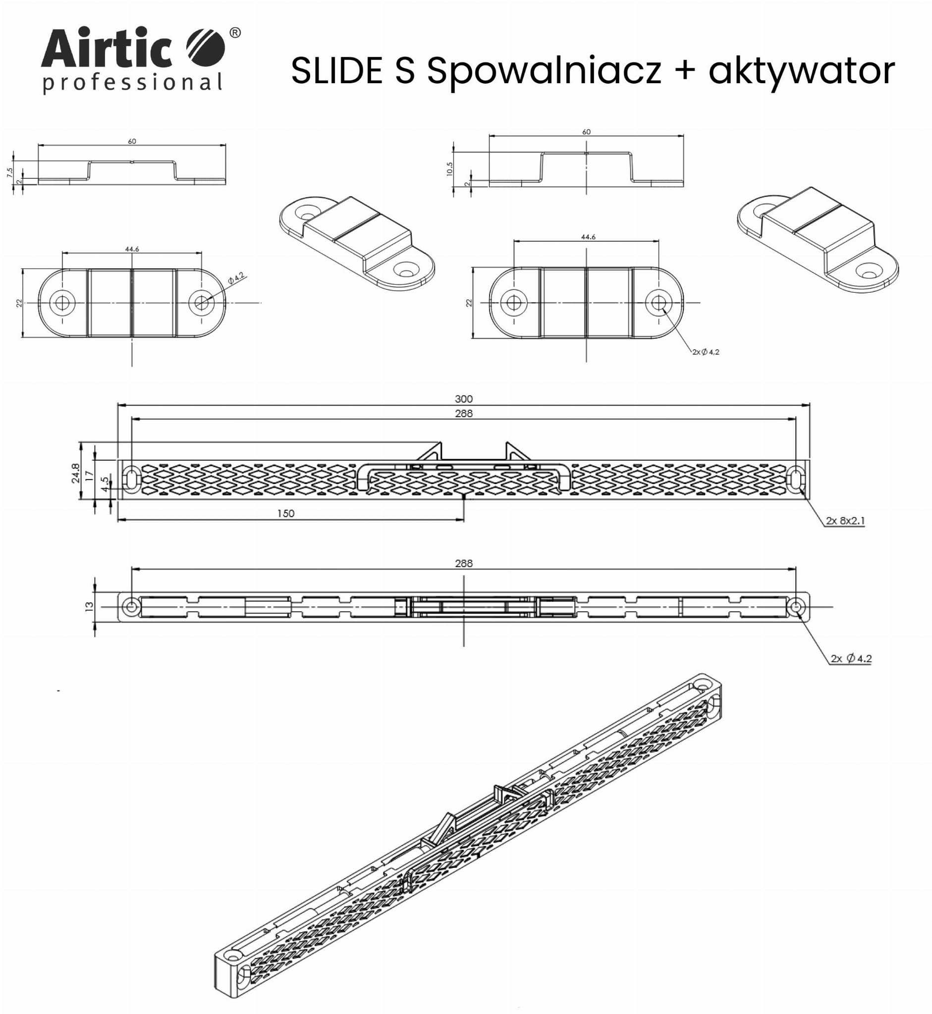 Spowalniacz cichy domyk hamulec do drzwi przesuwnych skrajny, AirticSLIDE S 35kg. Komplet na dwoje drzwi