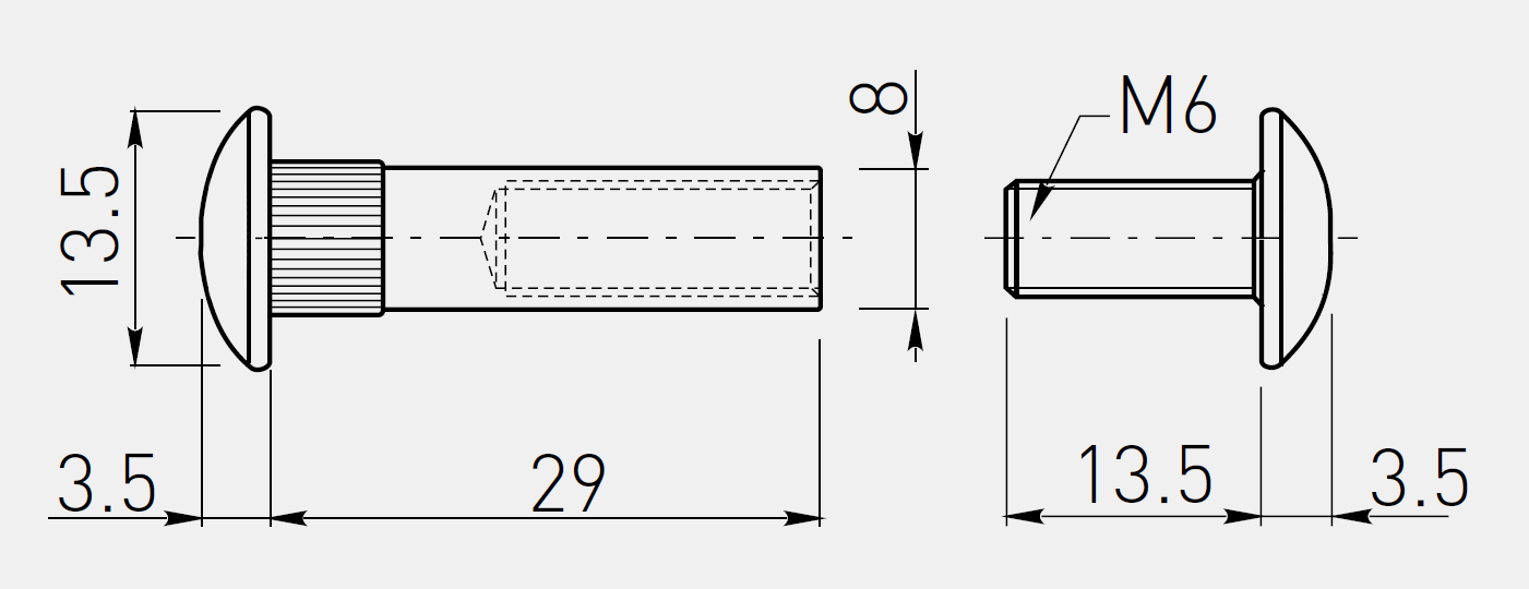 Złącza stosuje się do montażu dwóch płyt meblowych od 16-20 mm. Końcówka imbusowa