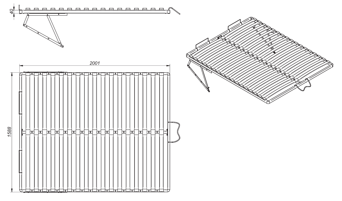 • Szerokość stelaża: 1588 mm