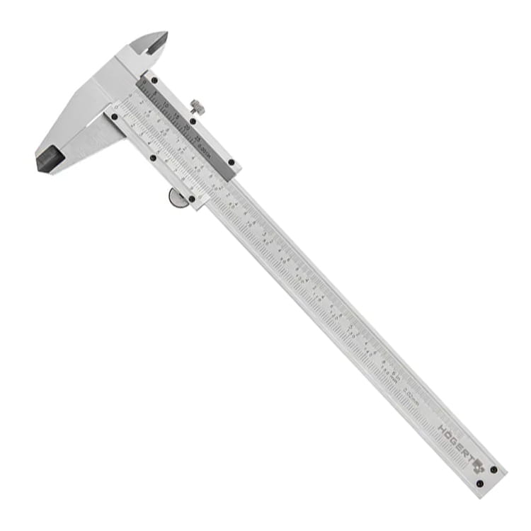 Suwmiarka analogowa do pomiaru wymiarów zewnętrznych i wewnętrznych. Posiada głębokościomierz