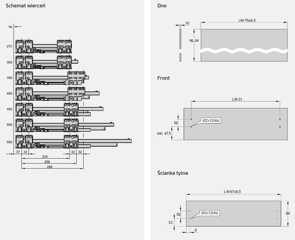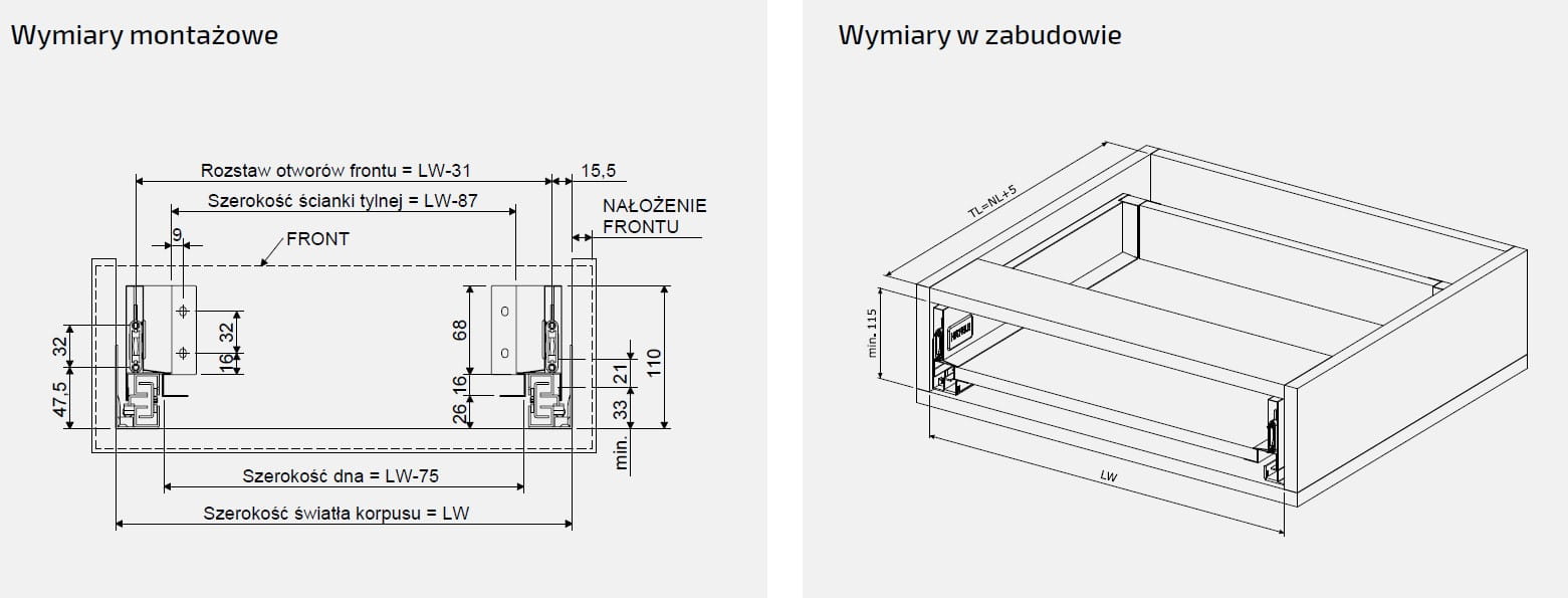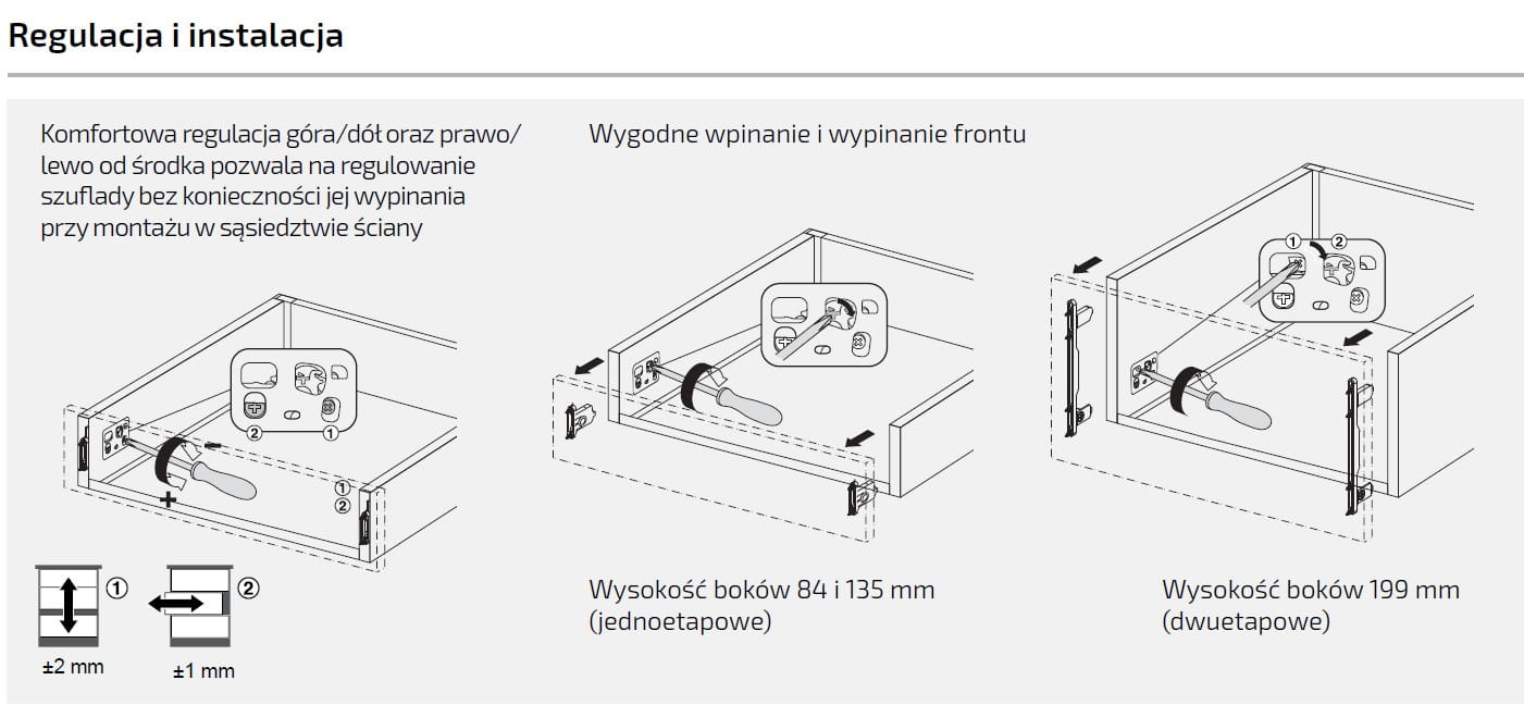 Szuflady Matrix S Slim zwiększają powierzchnię funkcjonalną mebli. Idealnie proste i cienkie boki (13 mm) sprawiają, że pojemność szuflad jest większa, przy jednoczesnym zachowaniu stabilności konstrukcji oraz udźwigu do 35 kg. Cztery wysokości boków pozwalają na elastyczne i wszechstronne zastosowanie systemu od kuchni po garderobę.
